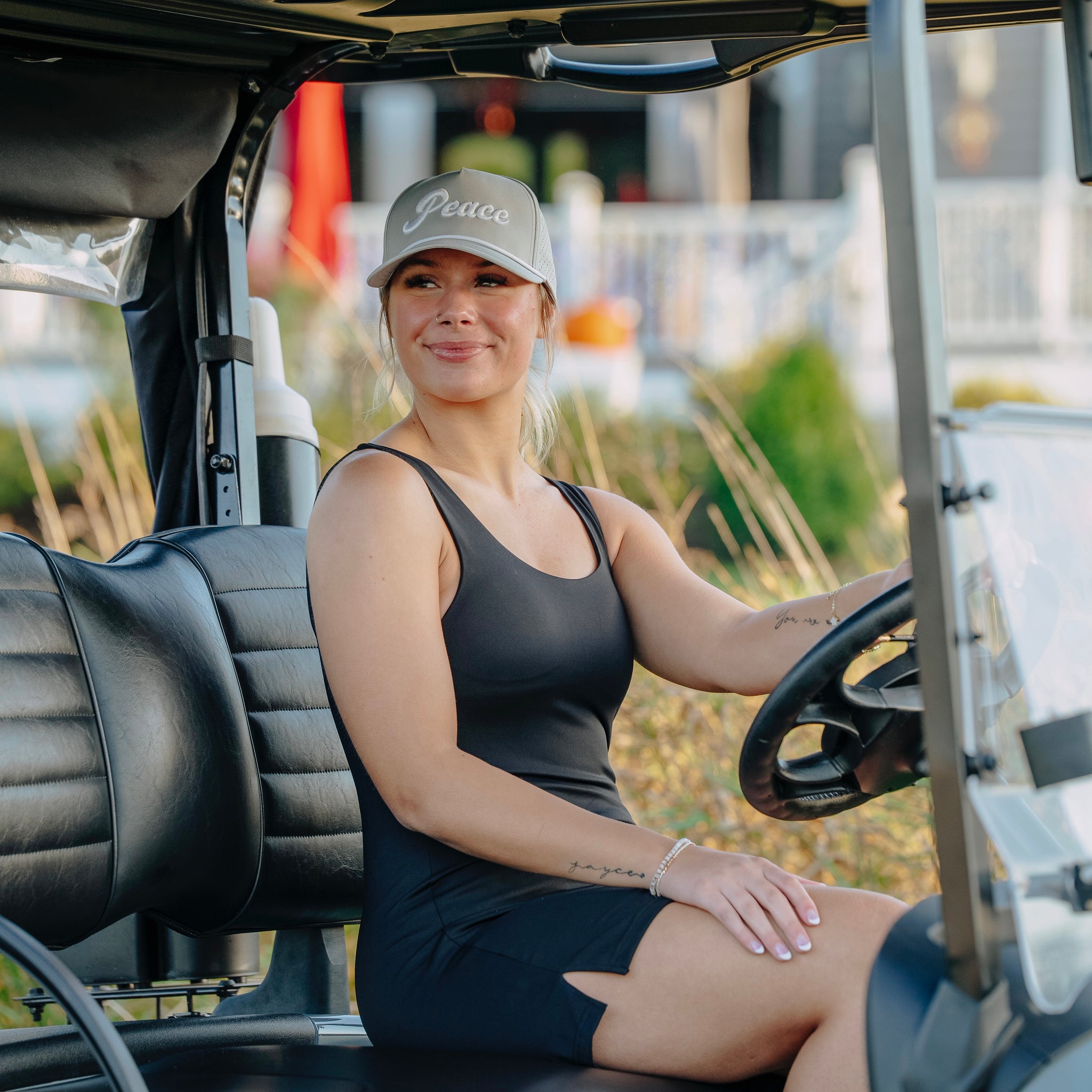 The dress runs small, so we recommend sizing up for the best fit. Embrace comfort, sustainability, and style with the Peace & Love Active Dress. This dress is designed to keep up with your active lifestyle while supporting the planet. Made from a four-way active stretch, seamless, and breathable fabric, it offers a sustainable choice that feels as good as it looks. Featuring quick-drying technology, this dress ensures you're comfortable all day long, no matter how intense your day gets. The fabric is anti-bacterial, anti-UV, and anti-static, providing ultimate protection and freshness. With a built-in bra and spandex for the perfect fit, this dress is ideal for all-day wear.